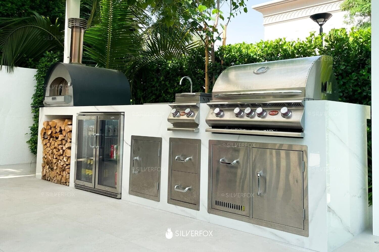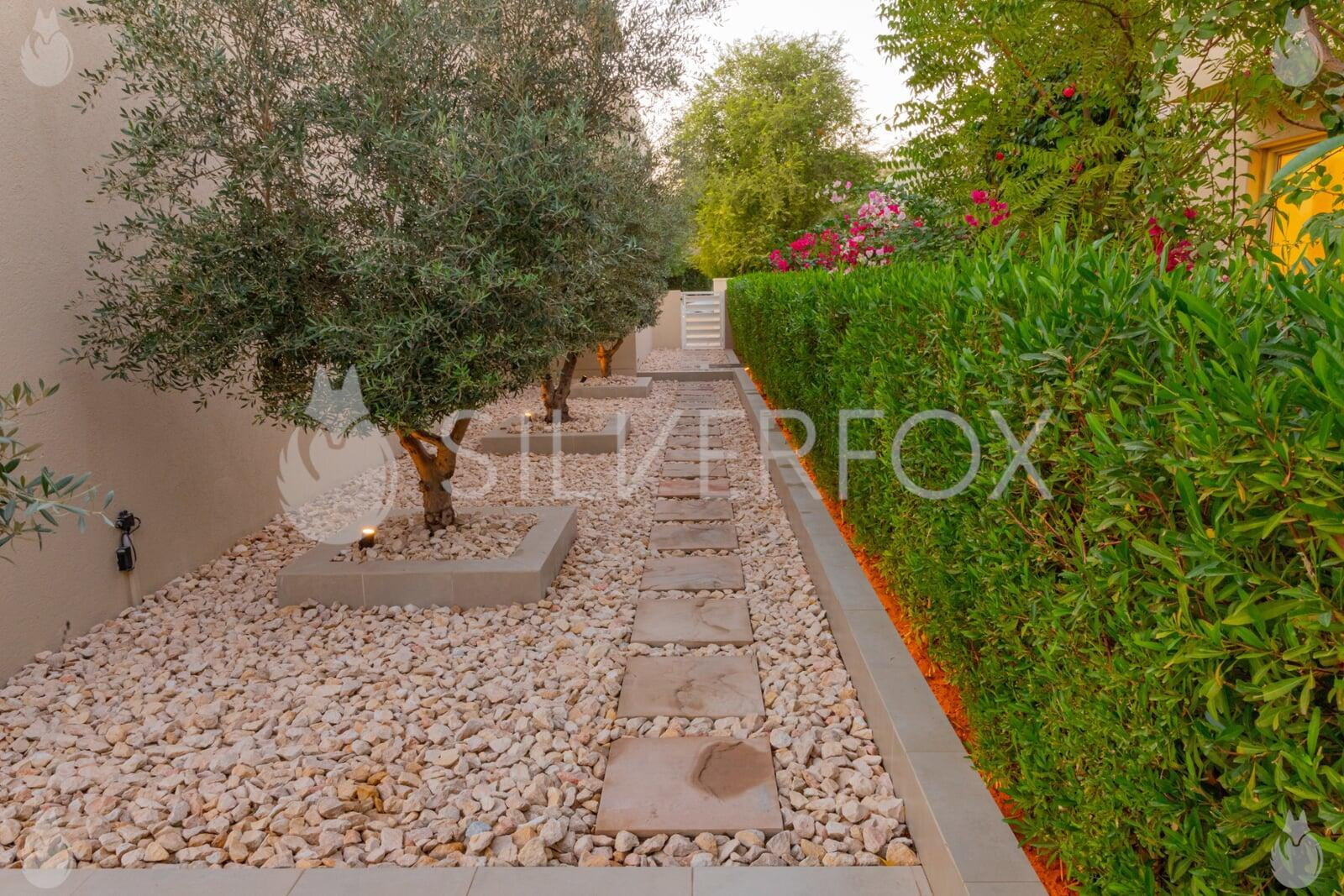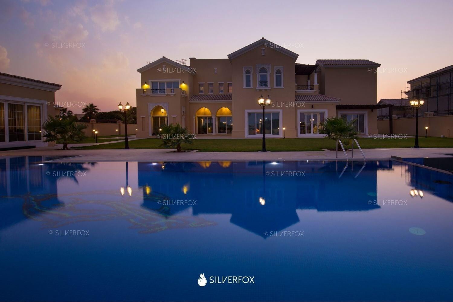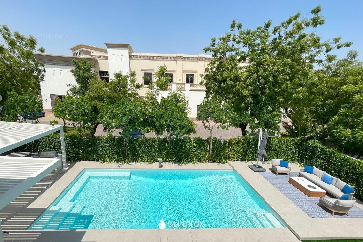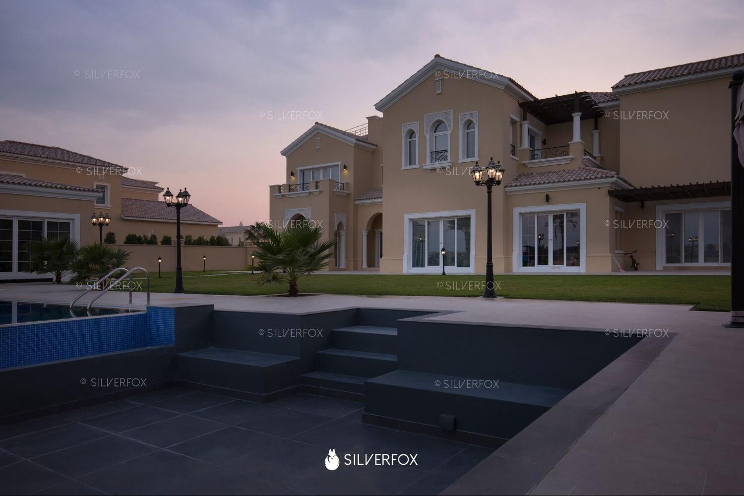 Residential Skimmer Pool with Steps, Water Feature, Decking, Outdoor Shower, Landscaping, Wooden Pump Room, & Outdoor Lighting