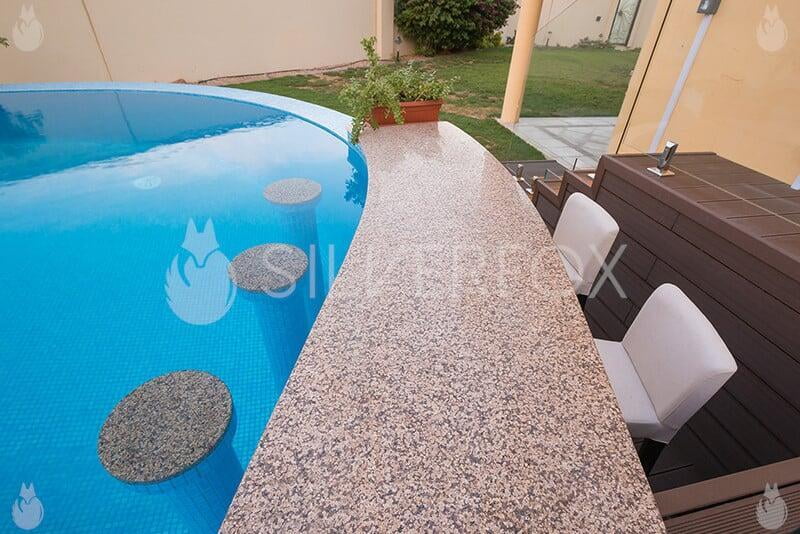 Residential Wet-Coping Infinity Edge Pool with Decking, Strip Lighting, Sunken Entertainment Area, Underwater Seats, Glass Fence, Aluminum Pump Room, & Outdoor Shower
